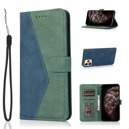 Estuche para Teléfono iPhone 11 Pro Cuero con Costuras de Dos Colores (Azul Verde)