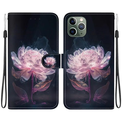 Estuche para teléfono iPhone 11 Pro cuero dibujo coloreado textura cristal (Peonía Púrpura)