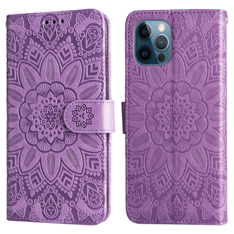 Estuche para Teléfono iPhone 11 Pro Cuero Estampado Girasol En Relieve (Púrpura)