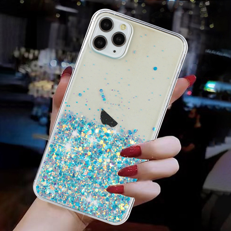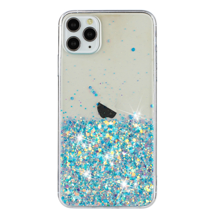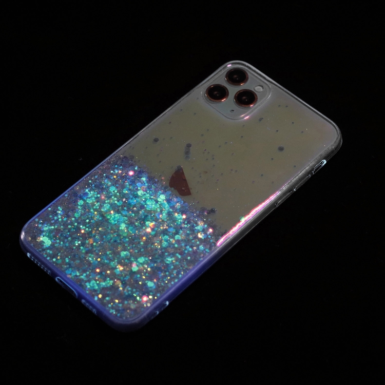 Estuche para teléfono TPU para iPhone 11 Pro con polvo de brillo noctilucente y marco Transparente (Azul)