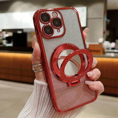 Estuche para Teléfono Magsafe iPhone 11 Pro Soporte Espejo Plateado Brillo Degradado (Rojo)