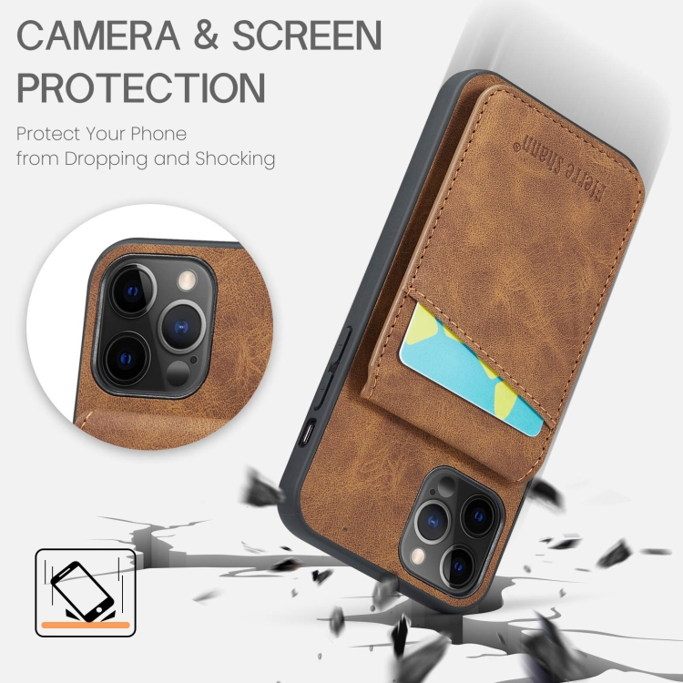 Funda para teléfono Fierre Shann Crazy Horse para iPhone 11 Pro Tarjetero Contraportada PU (Marrón)