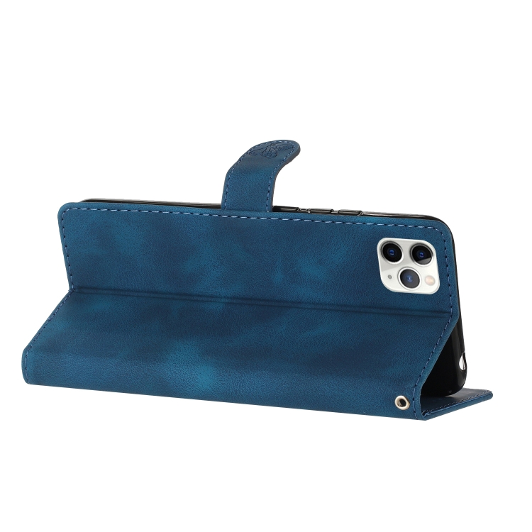 Funda de Teléfono iPhone 11 Pro Cuero Estampado de Flores en Relieve (Azul)