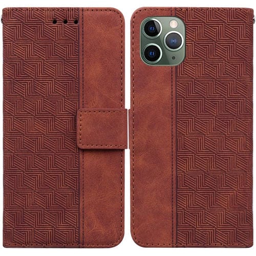 Funda de teléfono iPhone 11 Pro cuero con relieve geométrico (Marrón)