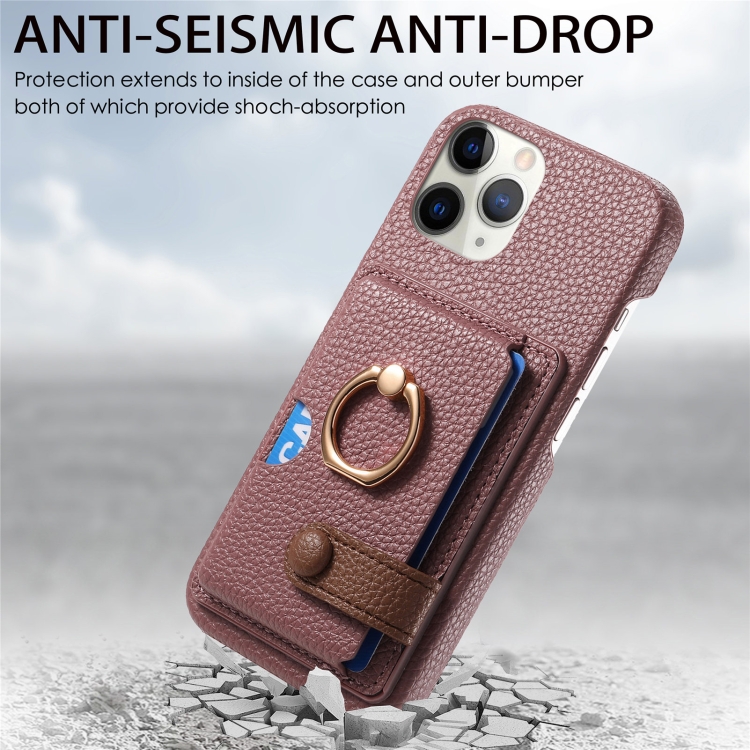 Funda para Teléfono iPhone 11 Pro con Parte Posterior de Tarjeta y Anillo de Borde de Cuero Litchi (Albaricoque Azufaifo)