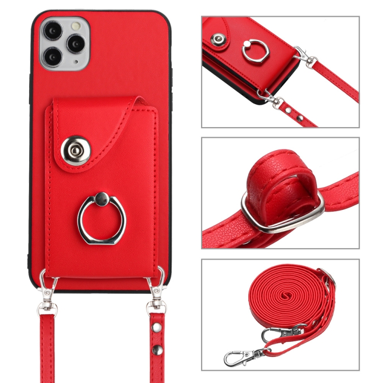 Funda para Teléfono iPhone 11 Pro con Soporte para Anillo y Bolsa para Tarjeta con Cordón Largo (Rojo)