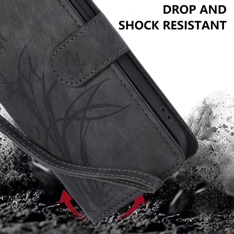 For iPhone 11 Pro Orchid Butterfly Embossed Leather Phone Case (Black)