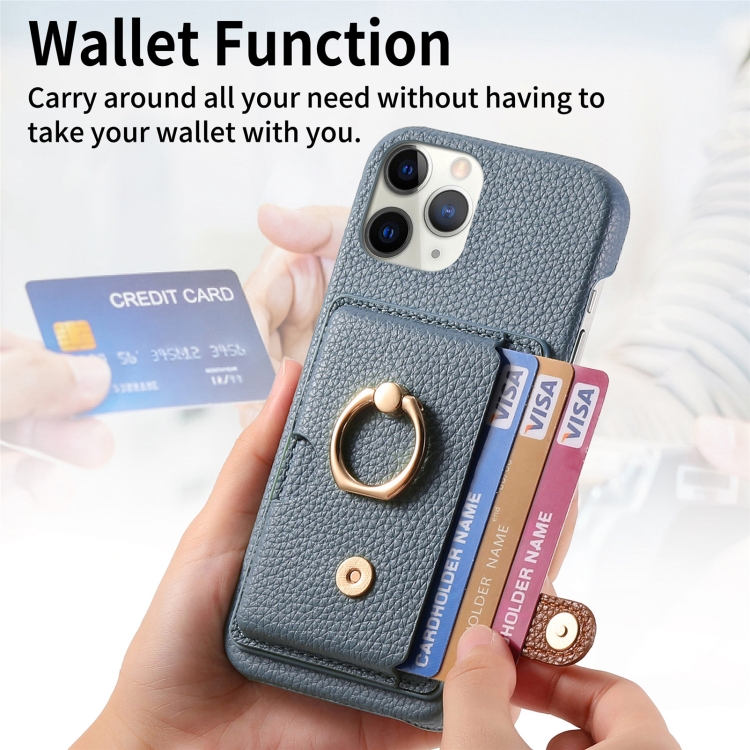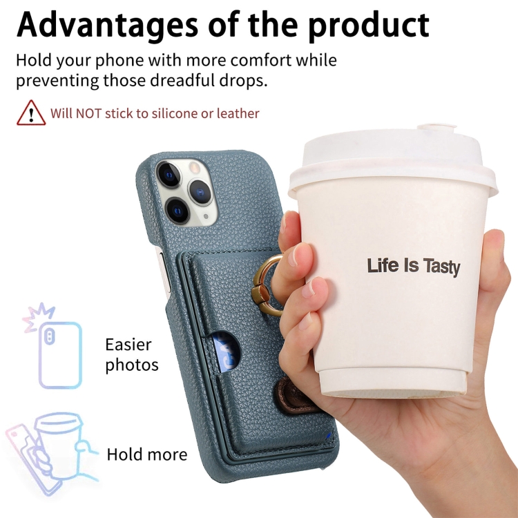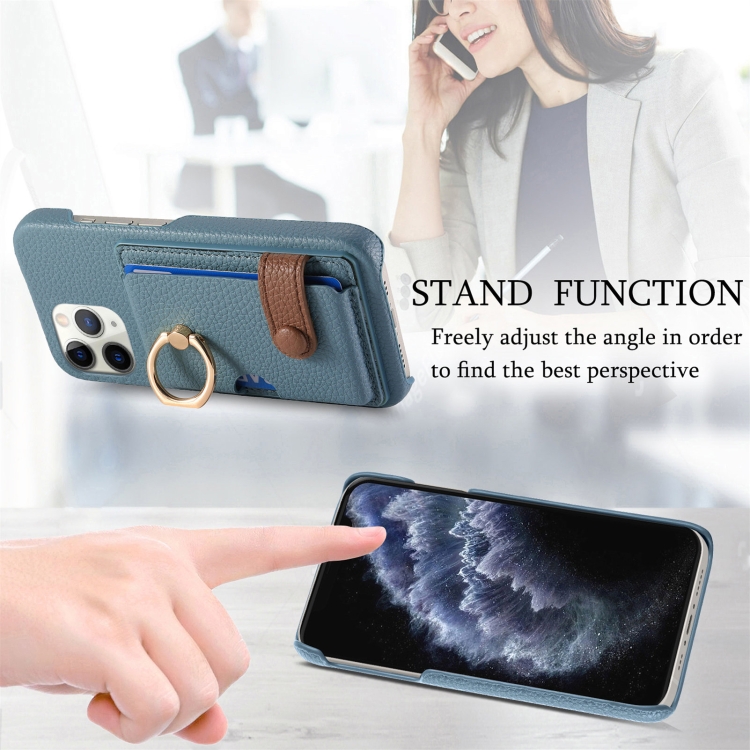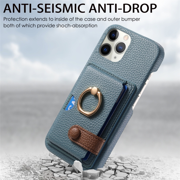 Funda para Teléfono iPhone 11 Pro Litchi Leather Oil Edge Ring Card Back (Azul Claro)
