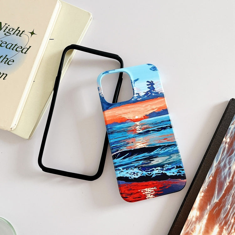 Estuche para teléfono 2 en 1 iPhone 11 Pro Max con patrón de mar y pintura al óleo desmontable (Amarillo Rosa)