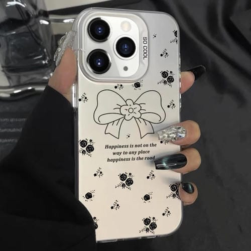 Caja de Teléfono Híbrida TPU para PC iPhone 11 Pro Max con Pintura Plateada (Lazo Floral Blanco)