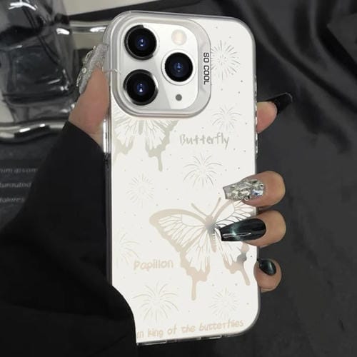 Caja de teléfono híbrida TPU para iPhone 11 Pro Max con pintura plateada (Mariposa Hueca Blanca)