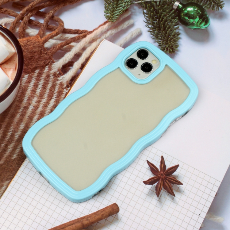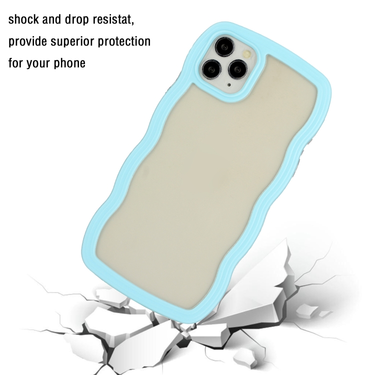 Funda para iPhone 11 Pro Max Candy Color Wave TPU Clear PC Phone Case (Azul)