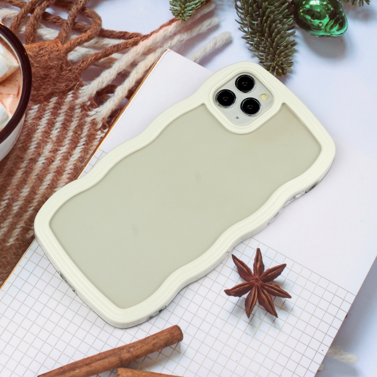 Funda para iPhone 11 Pro Max Candy Color Wave TPU Clear PC Phone Case (Blanco)