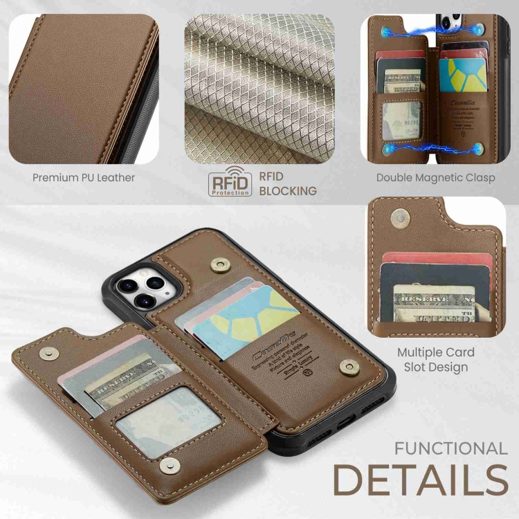 Estuche para Teléfono Caseme C22 para iPhone 11 Pro Max Antirrobo con Ranuras para Tarjetas Rfid (Marrón)