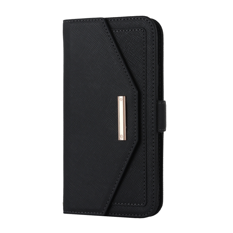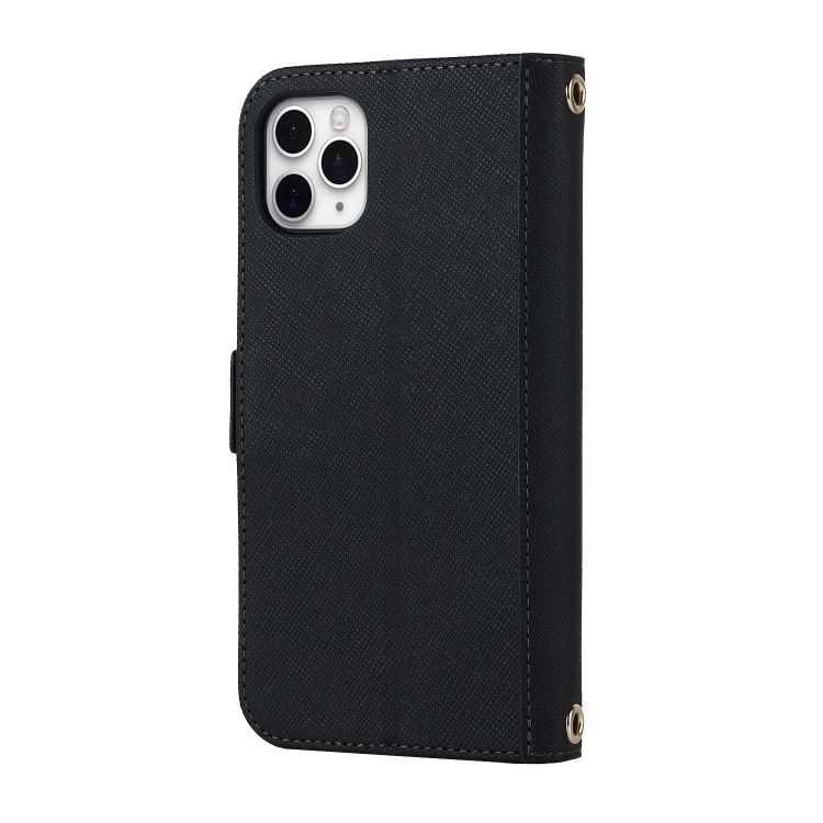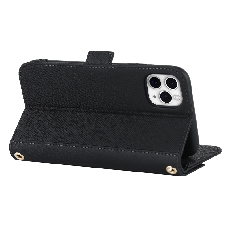 Funda para iPhone 11 Pro Max Cross Texture Lanyard Leather Phone Case (Negro)