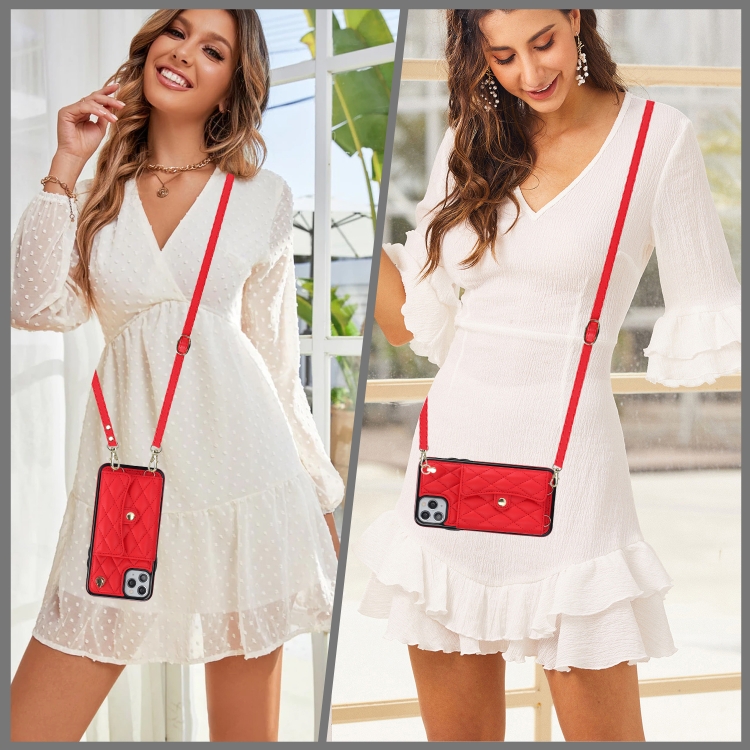 For iPhone 11 Pro Max Crossbody Rhombic Horizontal Wallet Leather Phone Case(Red)