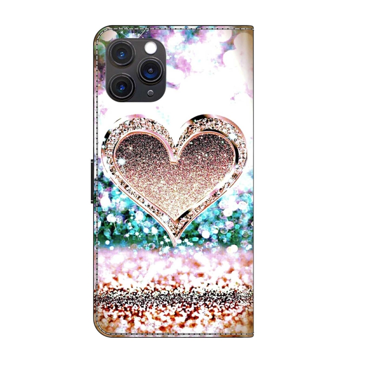 For iPhone 11 Pro Max Crystal 3D Shockproof Leather Protective Phone Case Cover (Pink Diamond Heart)