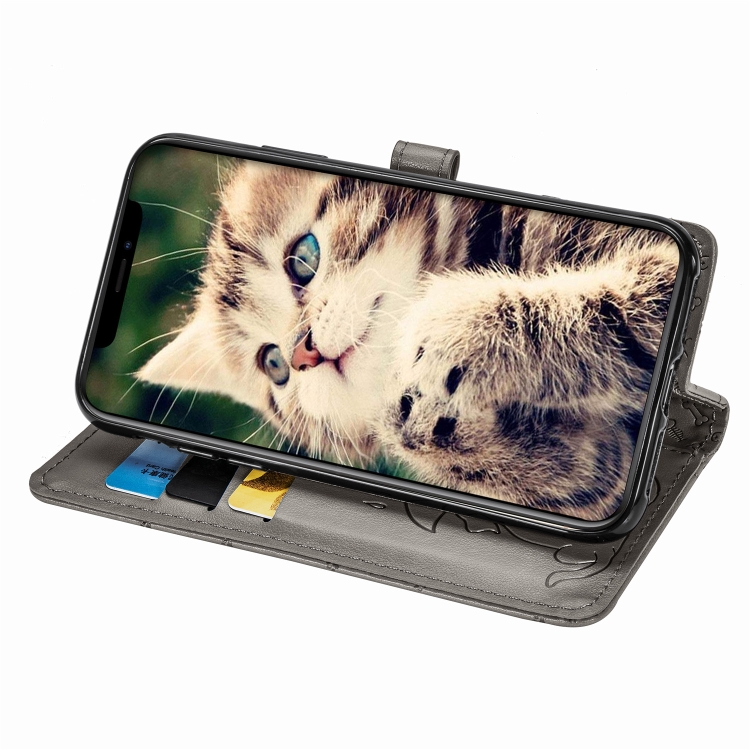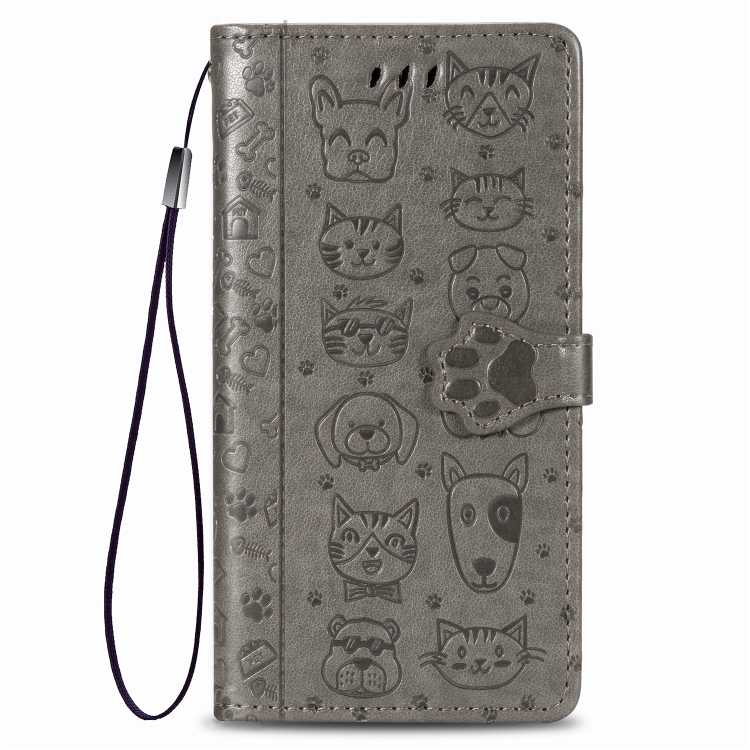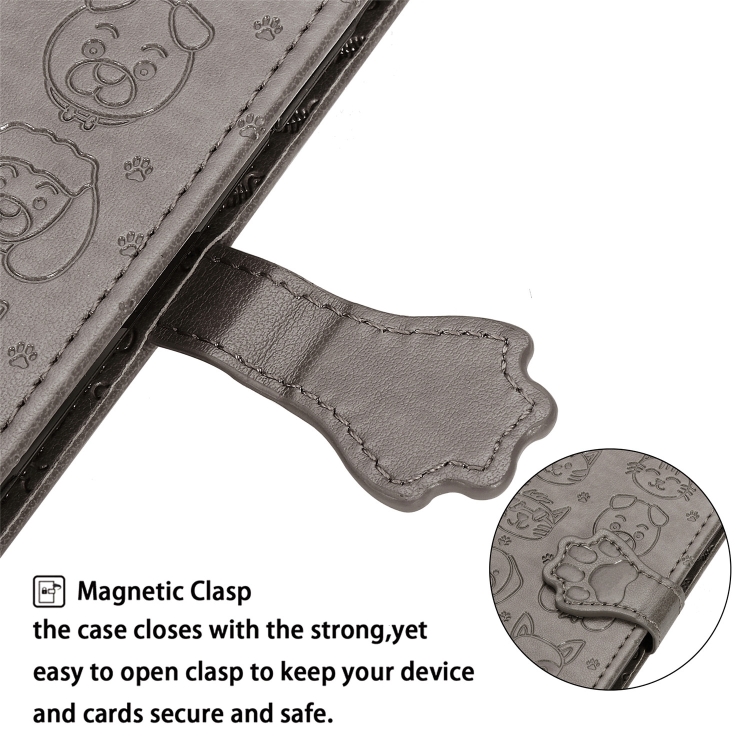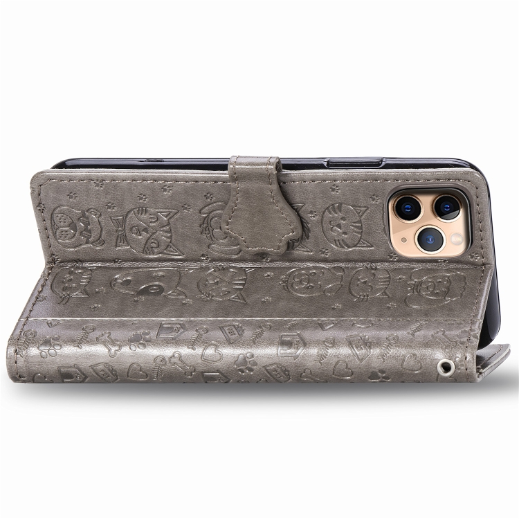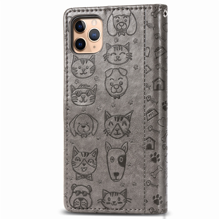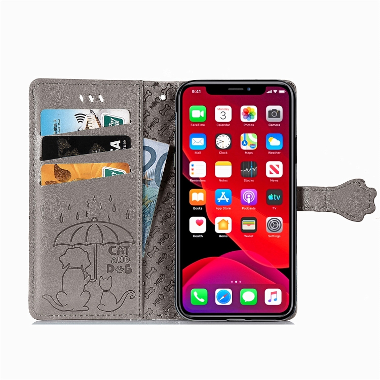 Estuche para iPhone 11 Pro Max Cute Cat And Dog Cuero PU con Tapa Horizontal En Relieve Soporte Ranura Tarjeta Billetera Cordón (Gris)