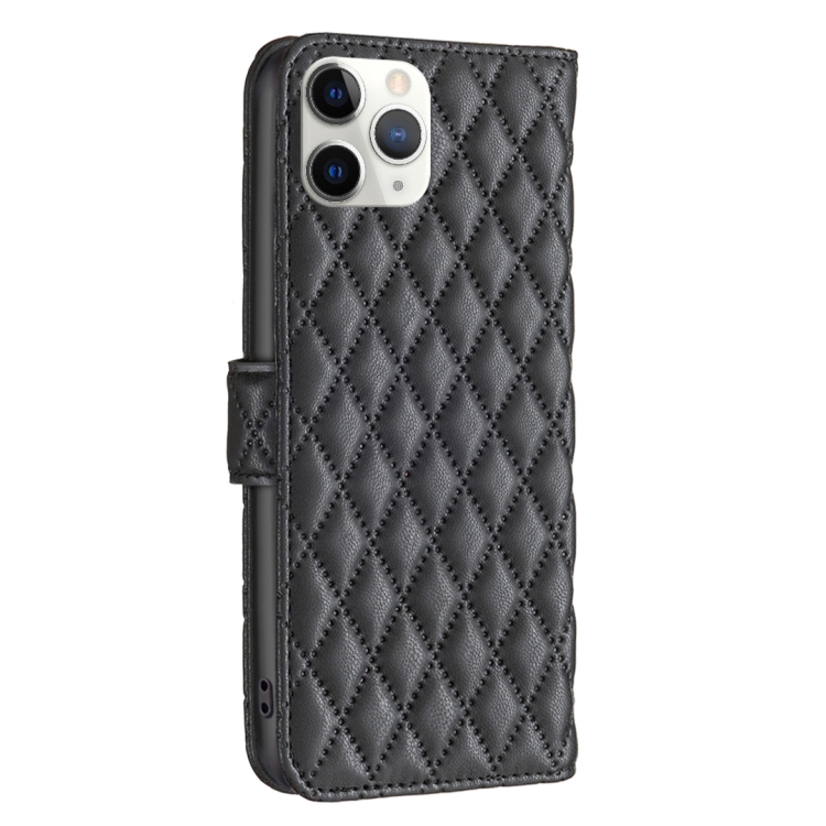 Funda para iPhone 11 Pro Max Diamond Lattice Wallet de Cuero con Tapa (Negro)