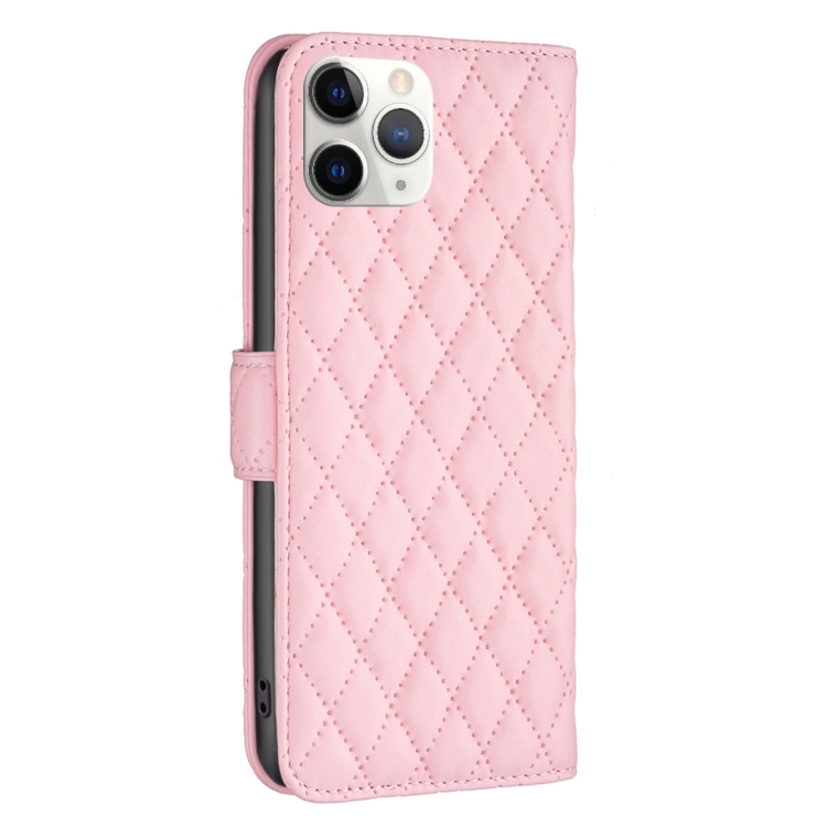 Funda para iPhone 11 Pro Max Diamond Lattice Wallet de Cuero con Tapa (Rosa)