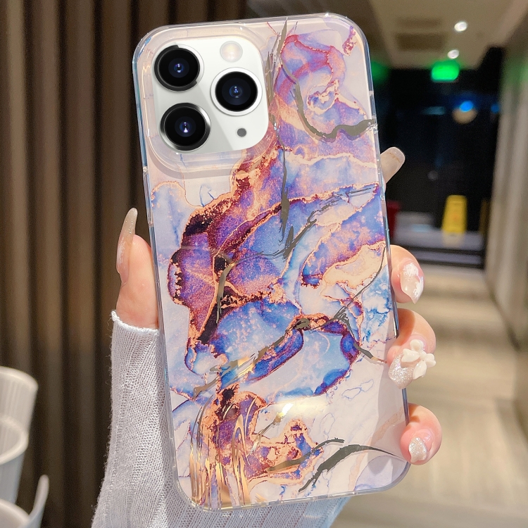 Estuche de teléfono iPhone 11 Pro Max Mármol Esmaltado (Gris Púrpura)