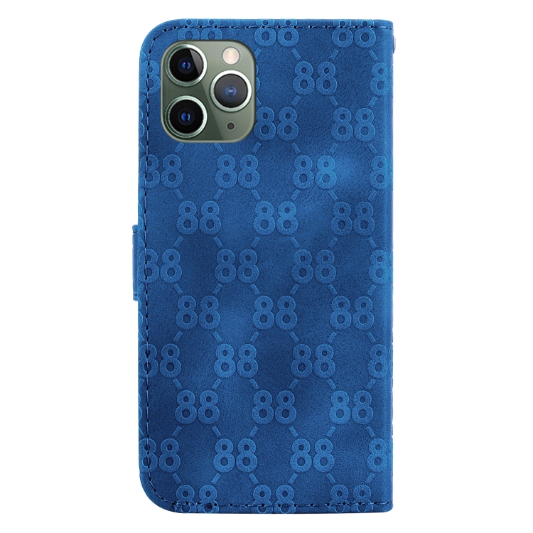Estuche para teléfono iPhone 11 Pro Max cuero en relieve doble forma de 8 (Azul)
