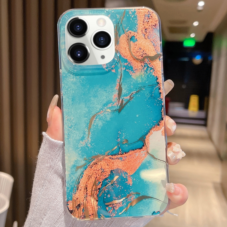 Estuche para teléfono iPhone 11 Pro Max Mármol Esmaltado (Dorado Verde)