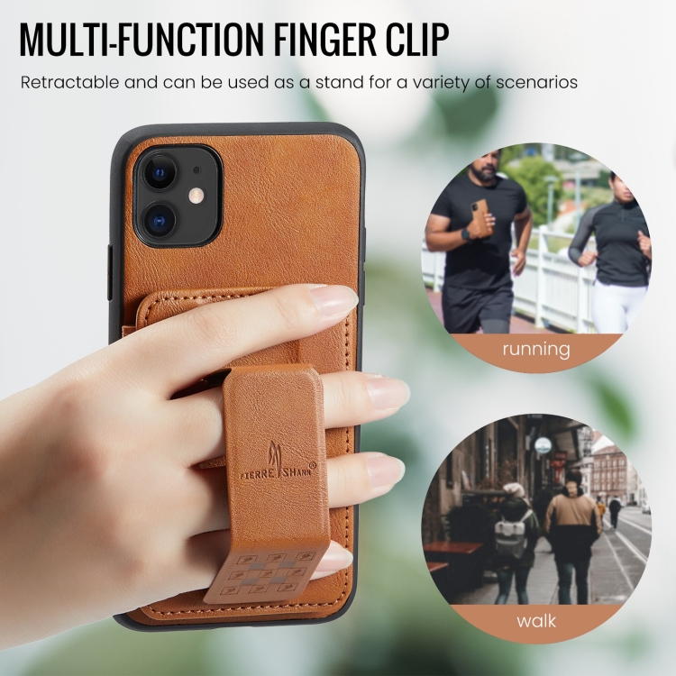 For iPhone 11 Pro Max Fierre Shann Oil Wax Cowhide Leather Card Holder Phone Case (Brown)