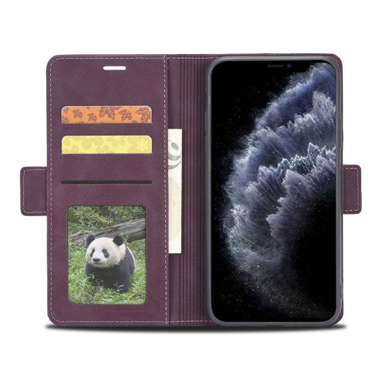 Funda de Cuero FoRWenw para iPhone 11 Pro Max con Hebilla de Doble Cara (Rojo Vino)