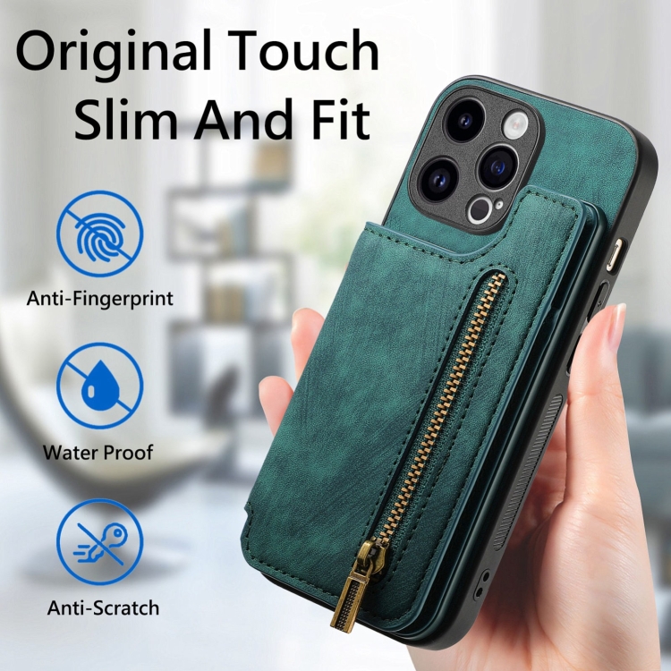 Funda para iPhone 11 Pro Max Cuero Retro con Cremallera y Billetera (Verde)