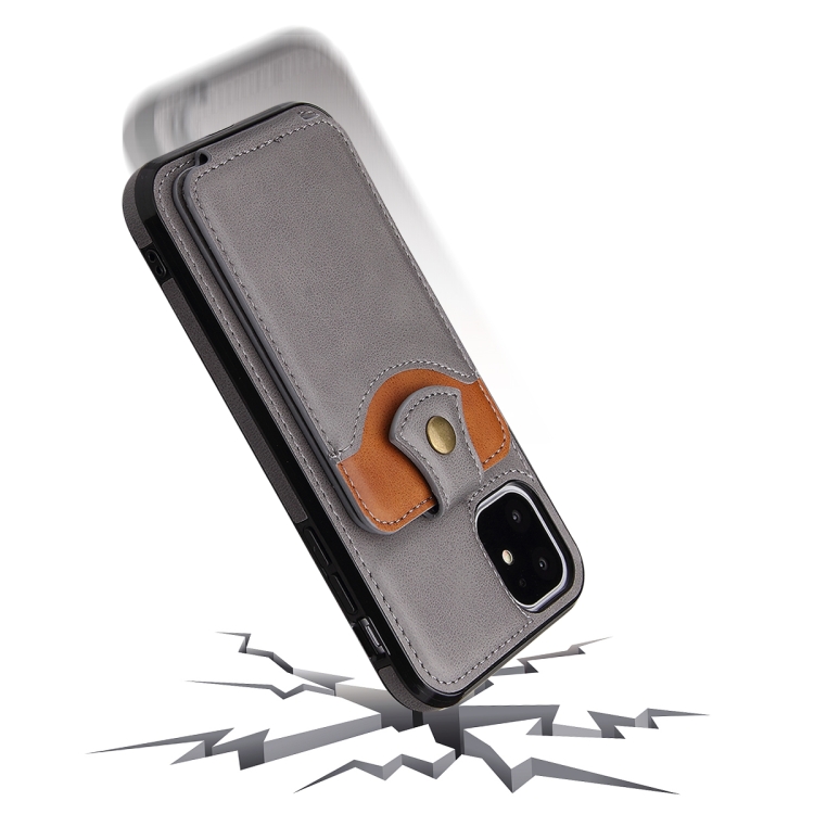 Funda para iPhone 11 Pro Max Cuero Suave con Billetera (Gris)