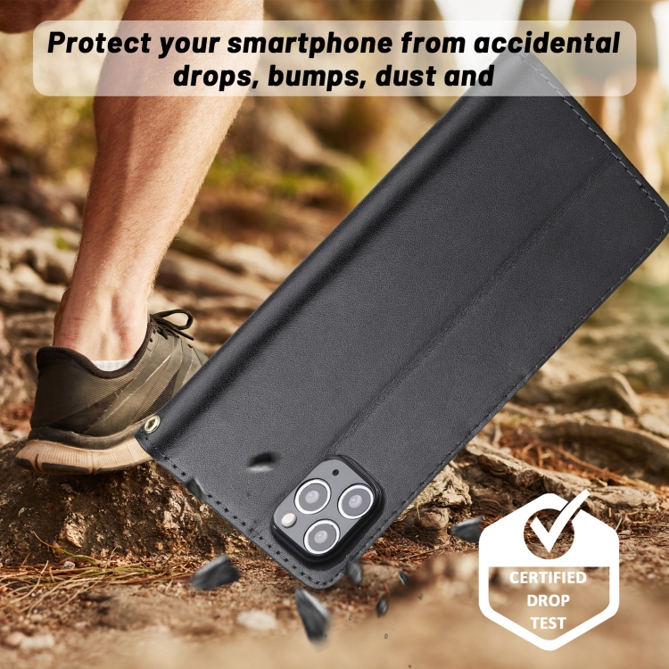 Funda de Teléfono iPhone 11 Pro Max Cuero de Vaca Tejido Liso (Negro)