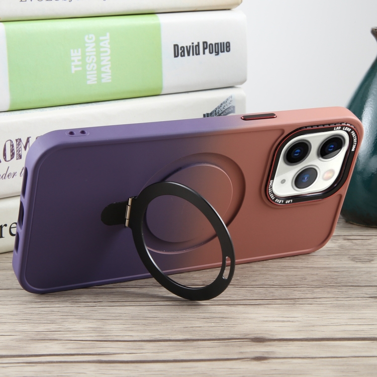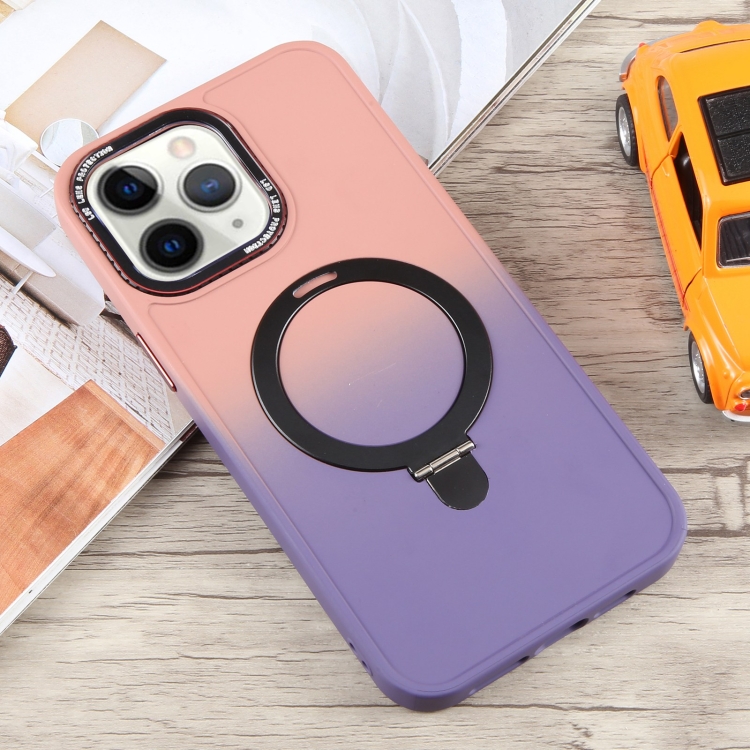 Funda para Teléfono iPhone 11 Pro Max con Soporte Magsafe y Silicona Líquida Gradiente (Rosa Púrpura)