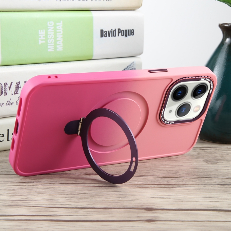 Funda para Teléfono iPhone 11 Pro Max Soporte Magsafe Gradiente Silicona Líquida (Rosa Rojo)