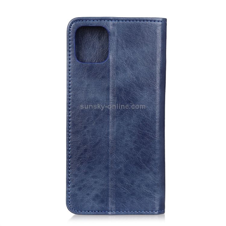 Funda de Cuero iPhone 11 Pro Max Magnetic Crazy Horse Texture con Tapa Horizontal Soporte Ranuras Tarjetas Billetera (Azul)
