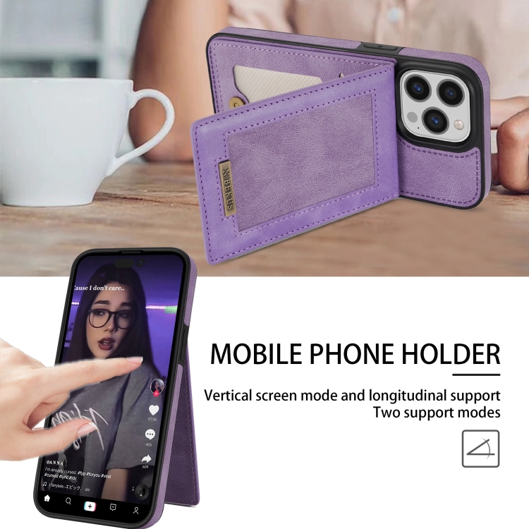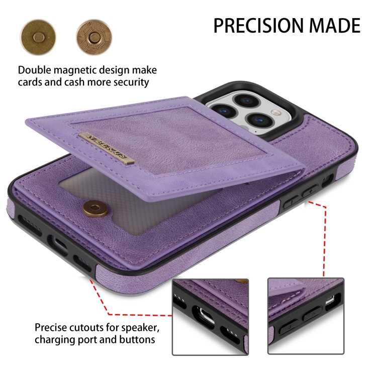Estuche para teléfono N.Bekus iPhone 11 Pro Max y 14 Pro Max ranura para tarjeta con tapa vertical (Púrpura)