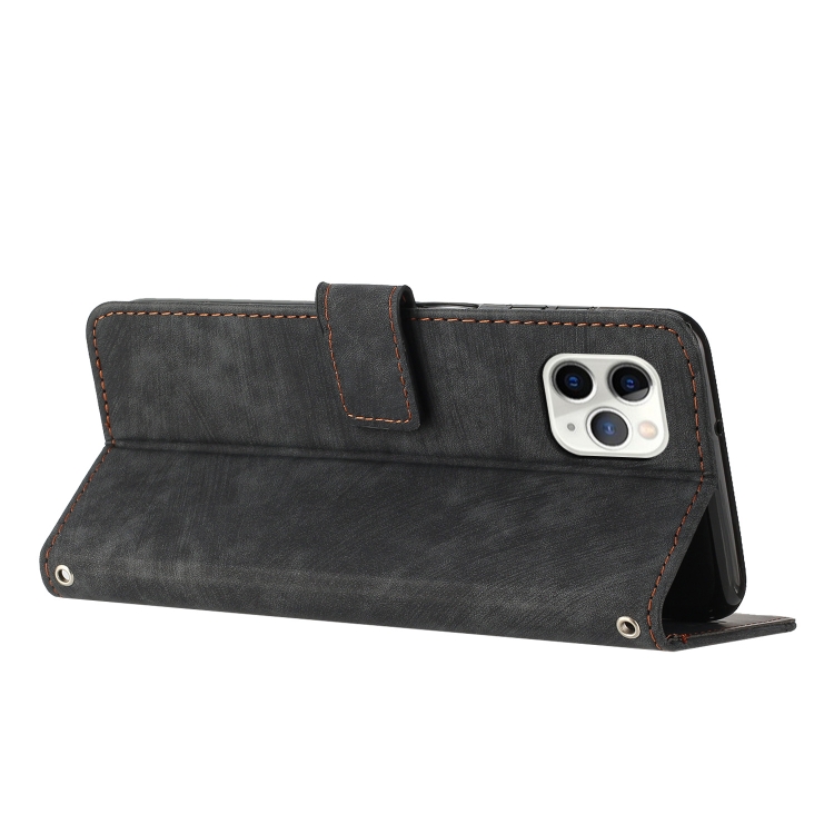 Funda de Cuero para iPhone 11 Pro Max Skin Feel Stripe Pattern con Cordón (Negro)