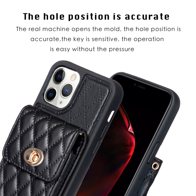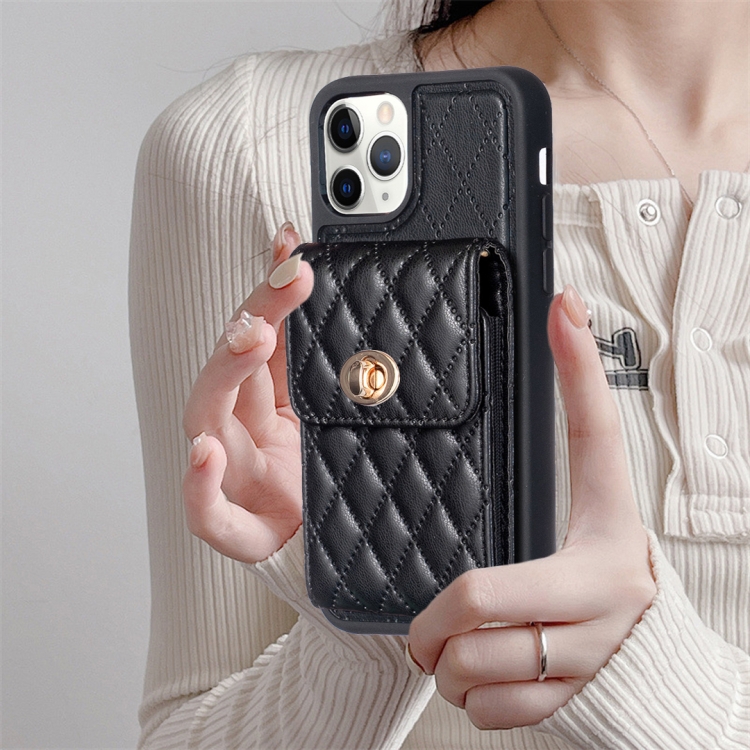 Funda para iPhone 11 Pro Max Vertical Metal Hebilla Monedero Rombico Cuero (Negro)
