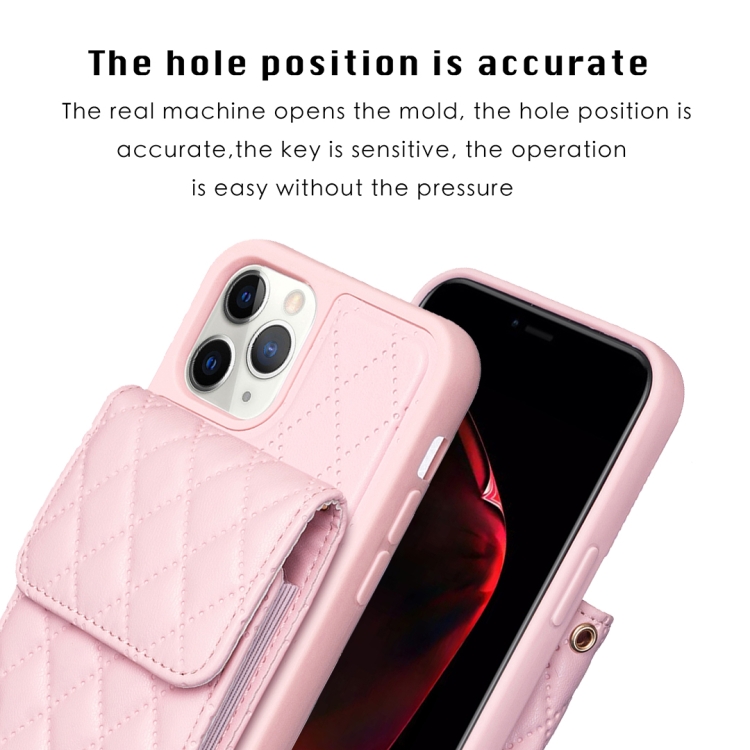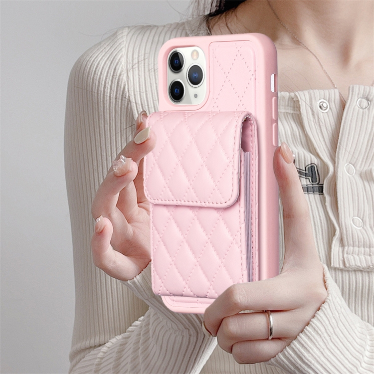 Funda para iPhone 11 Pro Max Vertical Wallet Rhombic Leather Phone Case (Rosa)