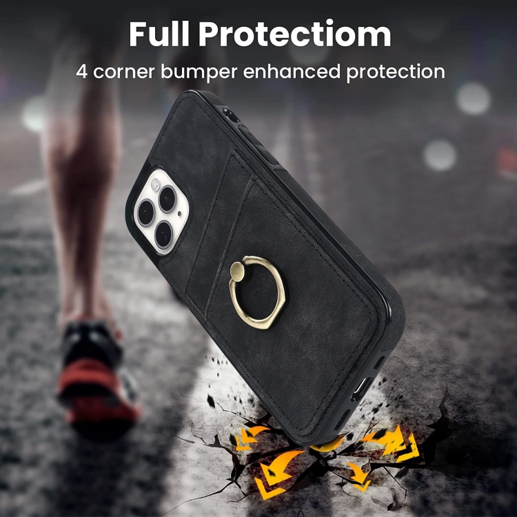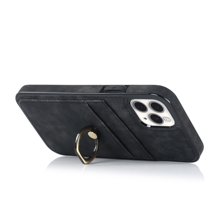 Funda para iPhone 11 Pro Max Vintage Patch Cuero con Soporte para Anillo (Negro)