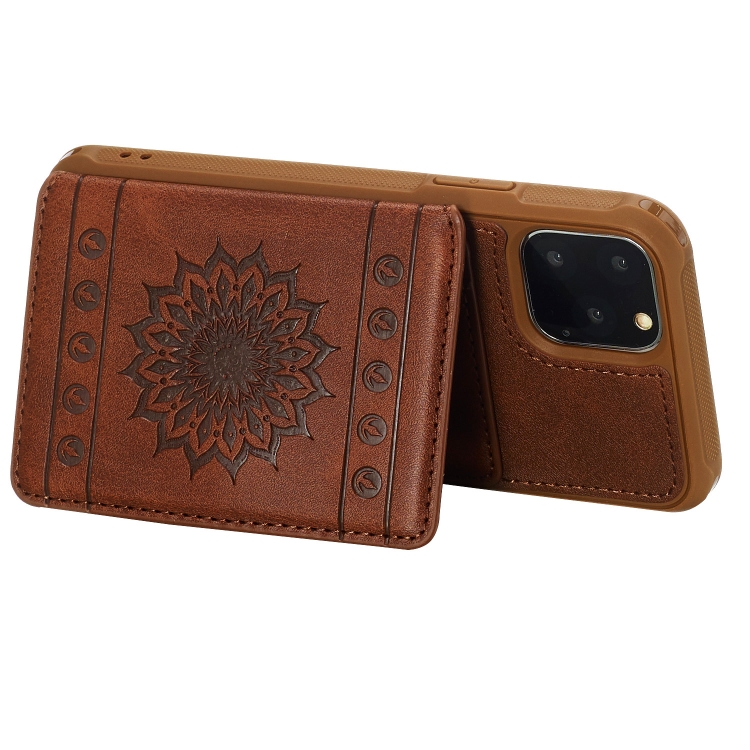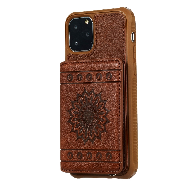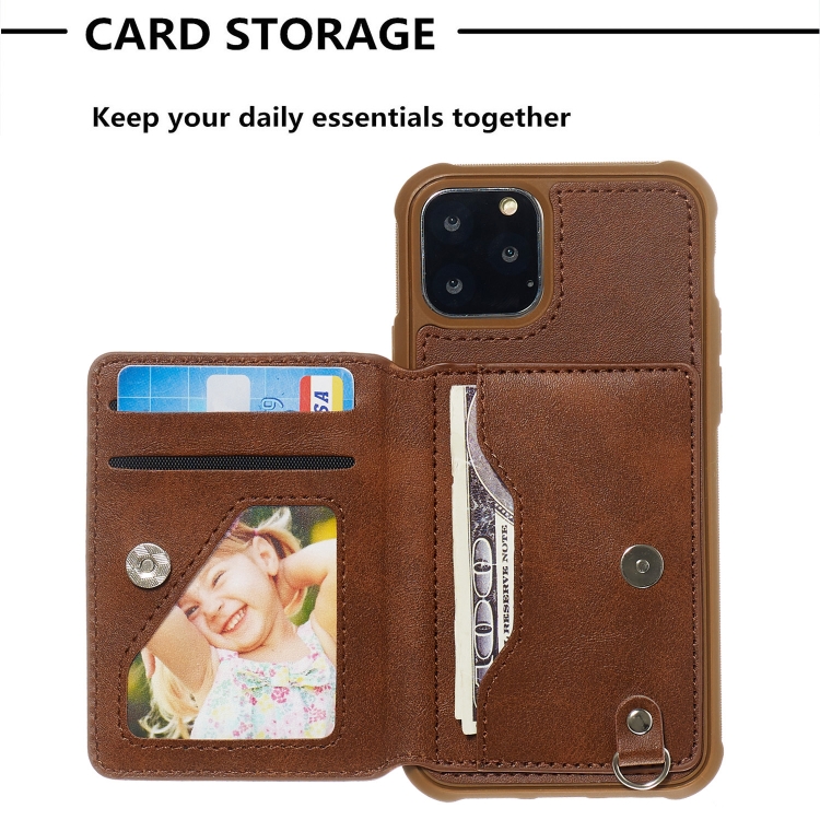 Funda para iPhone 11 Pro PU + TPU con Soporte, Ranuras para Tarjetas, Marco de Fotos y Cordón (Café)