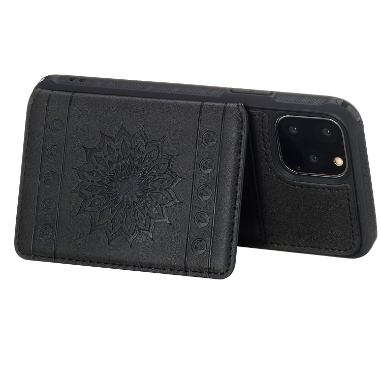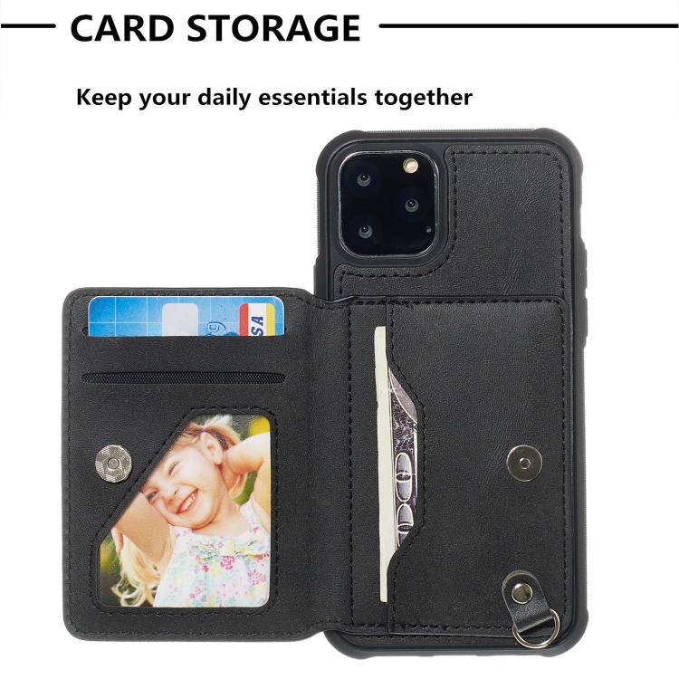 Estuche para iPhone 11 Pro PU + TPU con Soporte, Ranuras para Tarjetas, Marco de Fotos y Cordón (Negro)