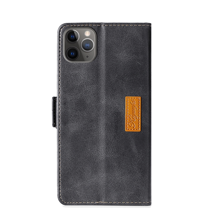 Funda de Cuero para iPhone 11 Pro Retro Textura Contraste Hebilla Lateral con Tapa Horizontal Soporte Ranuras para Tarjetas y Billetera (Negro)
