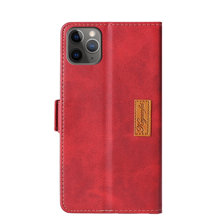 Funda de Cuero para iPhone 11 Pro Retro Textura Contraste Hebilla Lateral Tapa Horizontal Soporte Ranuras Tarjetas Billetera (Rojo)