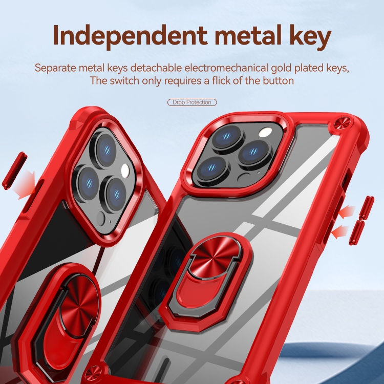 Estuche para Teléfono iPhone 11 Pro TPU + PC con Protección de Lente y Soporte para Anillo (Rojo)