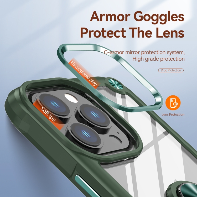 Estuche para Teléfono iPhone 11 Pro TPU + PC Protección de Lente con Soporte para Anillo (Verde)