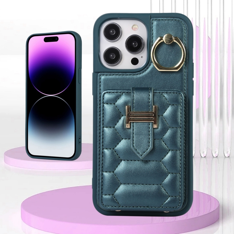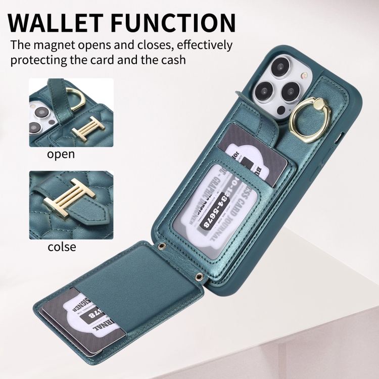Funda para iPhone 11 Pro Vertical Card Bag Ring Holder con Doble Cordón (Verde Oscuro)