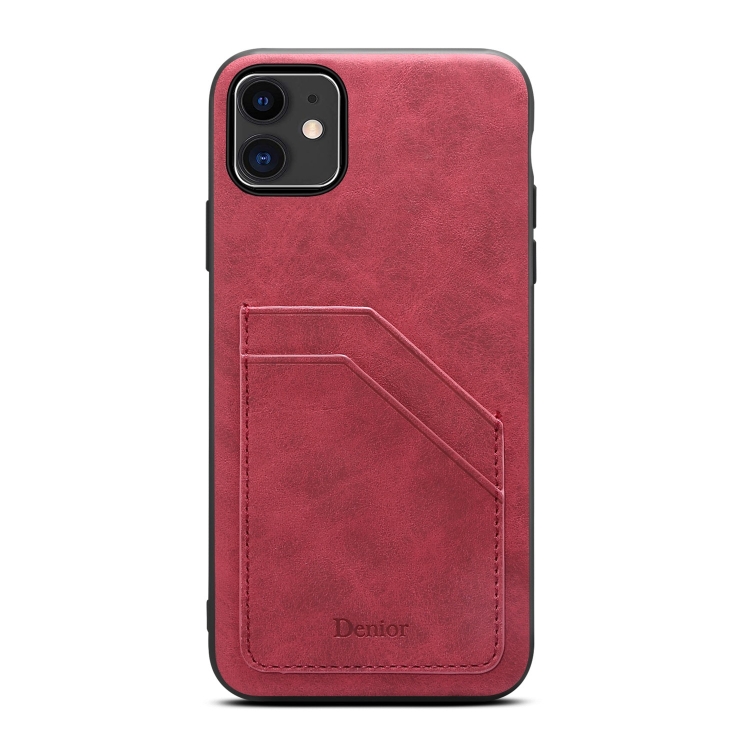 Funda para Teléfono iPhone 11 Ranuras para Tarjetas Cobertura Completa PU + TPU (Rojo)
