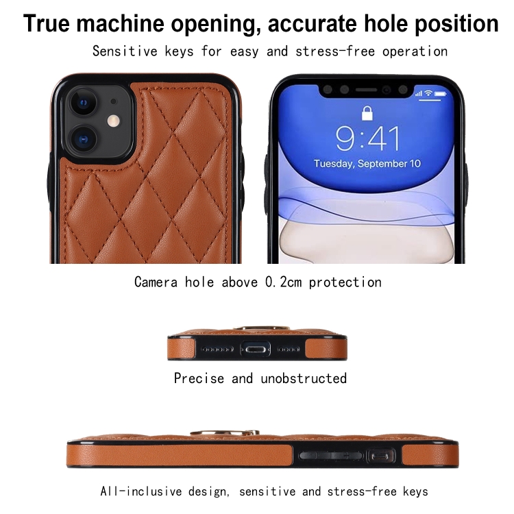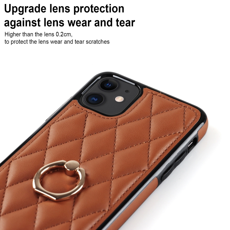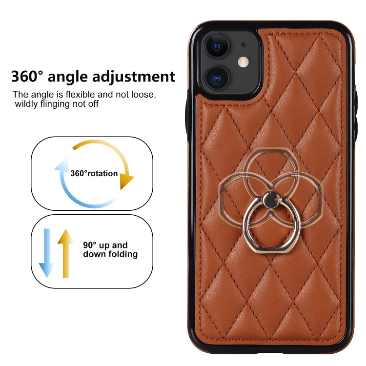 Funda de Cuero Rhombic para iPhone 11 con Soporte para Anillo (Marrón)