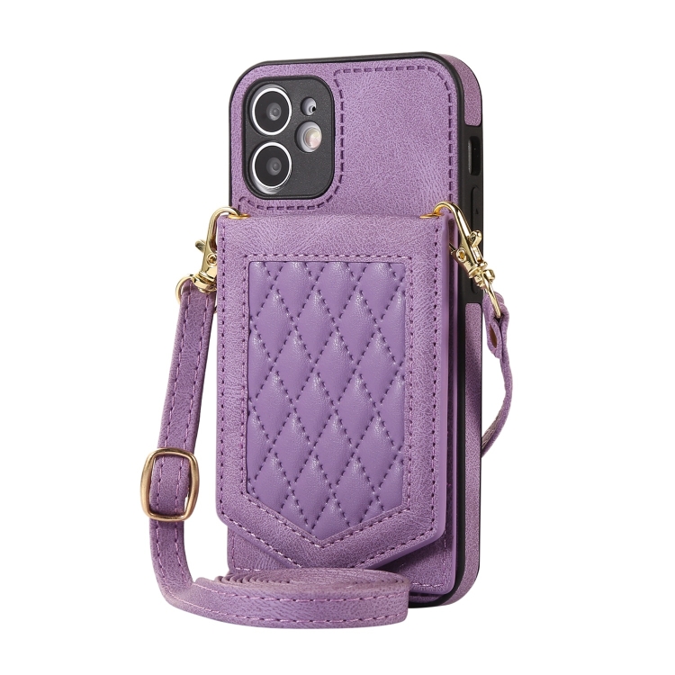 Funda para iPhone 11 Rhombic Texture con RFID, Cordón y Espejo (Púrpura)